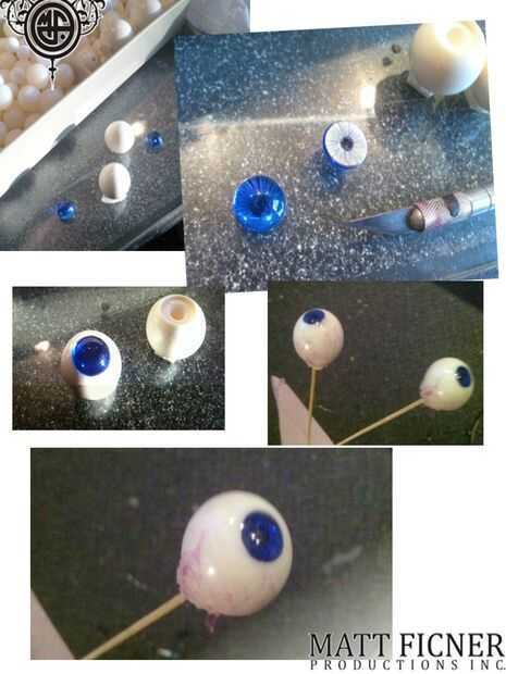 Cubrió el ojo todo con epoxi para darle un aspecto "mojado" natural. También he añadido filamentos de nylon púrpura alrededor de los bordes de los ojos un poco de una mirada "tiro la sangre".