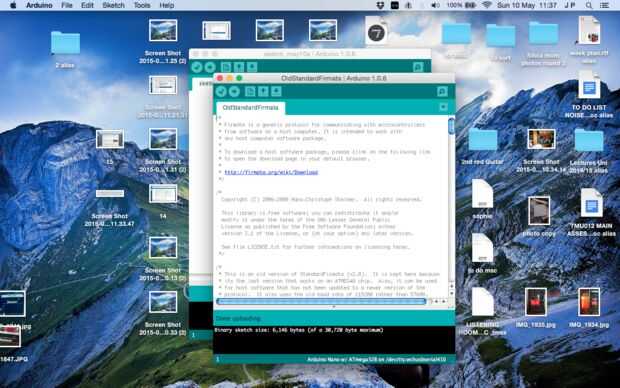 Una vez instalado, descarga 'Maxuino v.007' y guardar en una ubicación preferida (necesitaremos esto más adelante). Ahora, abra el Arduino Software y conectar tu Arduino Nano con el ordenador portátil vía USB. En la parte superior ir a 'Herramientas' y seleccione 'Junta: Arduino Nano'. A continuación, seleccione ' procesador: ATmega168' una vez conectado, ir a archivo: ejemplos: una firmado: 'StandardFirmata'. Una vez cargada haga clic en "Cargar" para cargar el código para el Arduino cerca Arduino Software