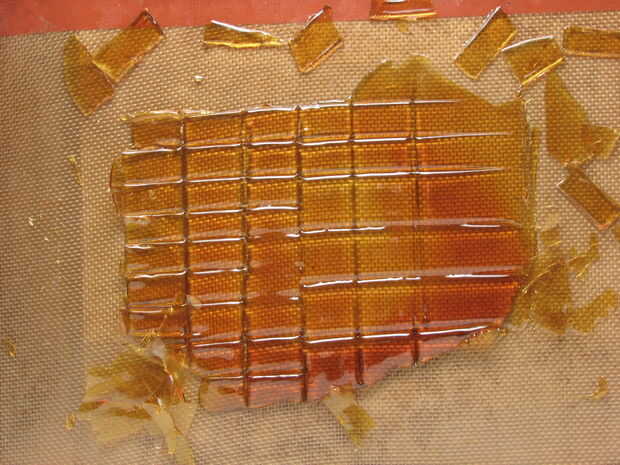 Empezar a verter poco a poco, la mezcla se enfriará rápidamente una vez que está fuera de la bandeja. Evitar verter en el centro de la mezcla de azúcar, el azúcar más fresco, más firme en los bordes formarán algo de una presa, para que el azúcar que se vierte no funciona todo tu contador. Vierta el azúcar en la forma y el grosor. Como el azúcar se enfría en el mostrador, utilice un cuchillo de mantequilla para probar y ver si puede cortar el azúcar sin que se pegue. Una vez que el azúcar esté lo suficientemente frío, corte/forma él en las formas deseadas. Deje que el azúcar piezas se enfríe completamente, luego sepárelos. Si han fallado piezas, mantenerlos limpios y libres de otras migas. Entonces puede arrojar estos trozos de azúcar cocido del su cacerola y volver a fundirlos. Si usas el caramelo como un colorante (como hice yo) cada vez derretirse el azúcar, se consigue un poco más oscuro. Importaba la ligera variación en el color, pero es algo a tener en cuenta.