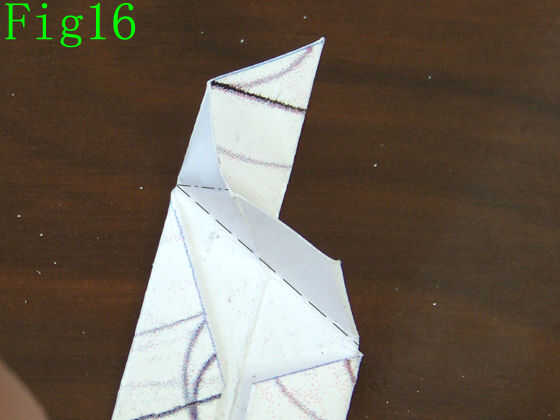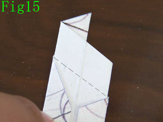 Sin bancos la unidad encima (como en Fig14), tomar la tapa frontal exterior frente a usted en la parte superior y dóblelo hacia abajo, haciendo un doblez de valle donde encuentran las dos esquinas de las solapas dobladas hacia adentro el borde exterior (Fig15)