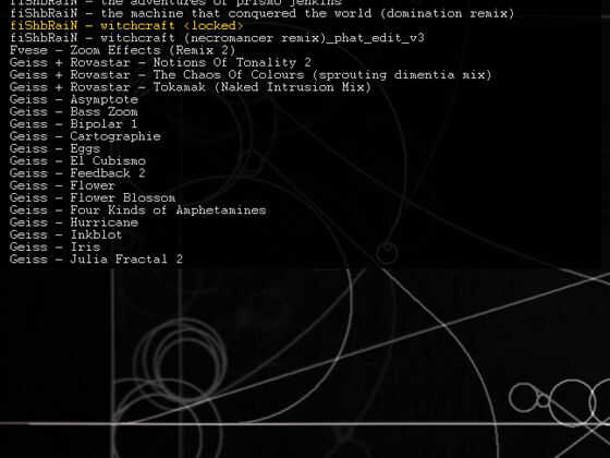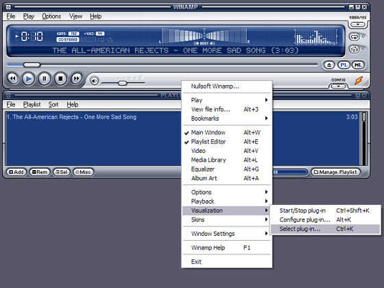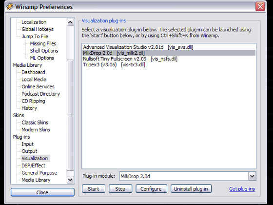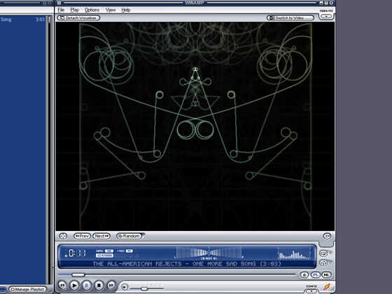 Utilizando Winamp, abre un archivo de música, reproducido y permitió la visualización. Winamp tiene un plugin llamado MilkDrop, que tiene cientos de visualizaciones. Puesta en marcha y luego ir a pantalla completa. Luego cargar un preset (tecla por defecto es "L") mi favorita es brujería por fiShbRain. Habilitarlo y bloquearlo (tecla por defecto es "Scroll Lock) para evitar que se cambio a otra visualización.
