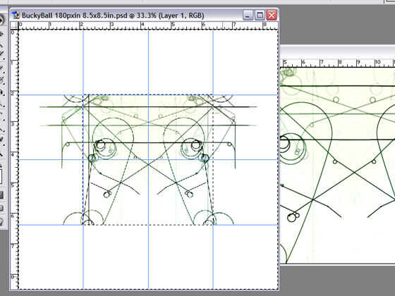 Abrir las imágenes de pantalla modificado y arrástrelos y colóquelos en el archivo PSD. Asegúrese de que tener "Ajustar a guías y documento límites" habilitado. (Vista > ajustar y ver > ajustar a) Centro la captura de pantalla en el centro de la rejilla y luego seleccione la herramienta recuadro y seleccionar el interior de cuatro plazas. (Ver imágenes)