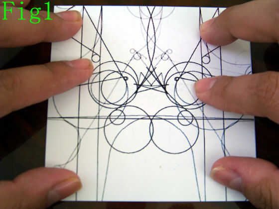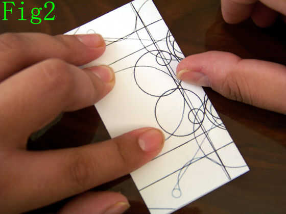 Asegurándose que el lado impreso hacia abajo (dib.1 -derecha de mina arriba, me olvidé de darle la vuelta antes de la foto), tome un pedazo cuadrado de papel y doblar por la mitad. No importa qué lado de la Plaza es para arriba. (Fig2)