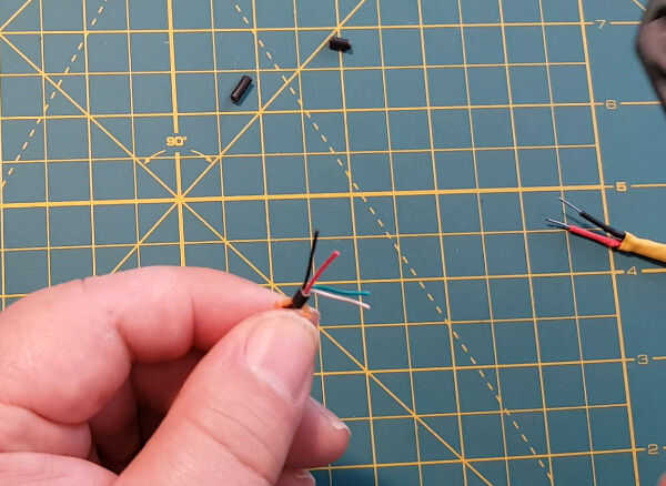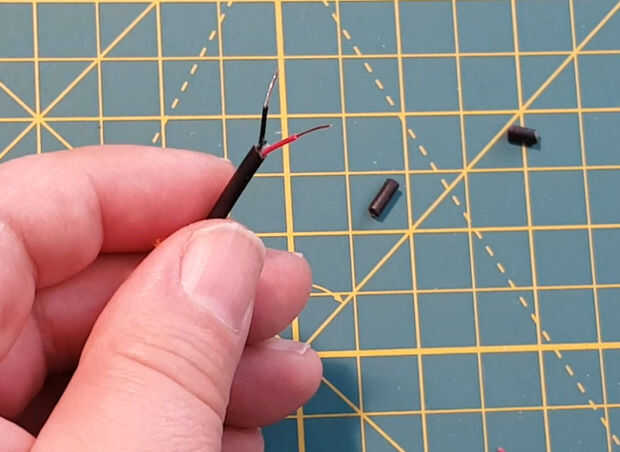 - Cortar los otros 2 hilos dejando los cables negro y rojo