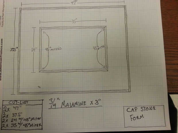 Crear los planos de piedra angular son casi exactamente igual que los planos de Fundación, con la excepción de que se corte el interior paredes con ingletes de 45 grados. Esto se hace para mantener el agua saturado concreto de la capa interna de la madera en el malemine que es básicamente serrín compactado sólo la hinchazón.