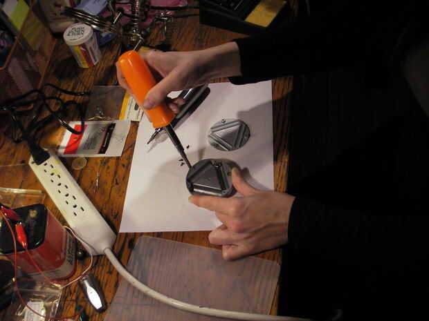 Cuidadosamente con un destornillador de cabeza plana, levante la tapa.  Sólo se celebra en tres puntos del pegamento.