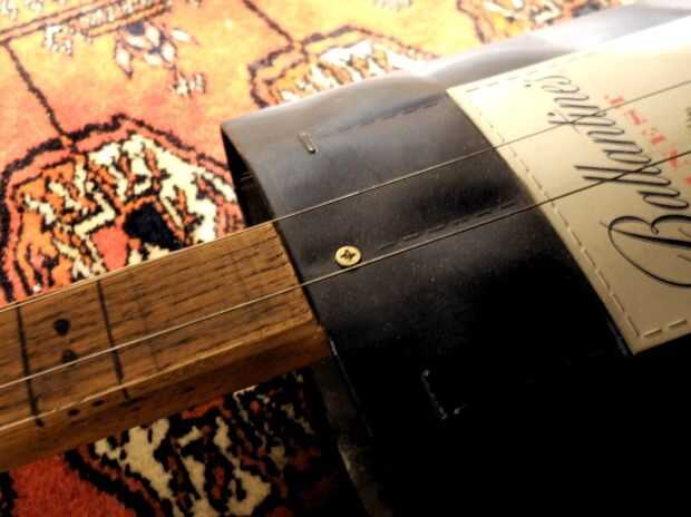 Ver en las fotos, puede explicar casi todo el proyecto. El Ballantines puede tiene una tapa y una cubierta. Eliminar para obtener el poder en sí mismo. Cortar una barra de cuello de la duela de madera, usando sus ojos. La longitud puede ser tu cca span. 3 - 4 veces. (Debajo de 'palmo' me refiero a la distancia entre el dedo pulgar y dedo meñique separado - lo siento, soy un hablante no nativo, como se ha visto antes;-)). El ancho del cuello es cca. 2-3 dedos. Si desea adjuntar 3 cuerdas, debe ser más ancha, pero el canjo tradicional se construye con solamente 1 cadena. En el cuello, donde corren las cuerdas, pegué una hoja delgada de madera (abedul) como' tapping' para levantar las cuerdas sobre el resonador - esto es un plus, pero con esta elevación las cuerdas no puede llegar el resonador incluso si juegas en la zona alta del cuello. Cuando se corta el cuello, perfore un orificio en su extremo y perfore un agujero de otros en el poder a tope, también, en el centro, la varilla de medición como se puede ver en las fotos. Se atornille el cuello madera en este agujero, y después de él, se perfore otro agujero en la parte superior del cuerpo y el cuello para fijar el cuello en dos puntos del cuerpo (o la lata). Estas son visibles en las fotos.