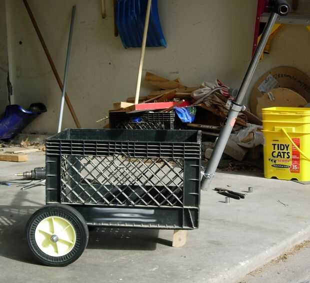 Después de algunas mirando a su alrededor, encontramos una caja de leche, algunas ruedas de un viejo esparcidor del fertilizante y la empuñadura de un scooter sin usar.