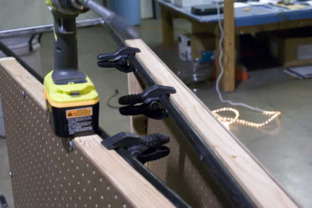 Tomado algunos tornillos (2 pulgadas en mi caso) y fijar el marco a la pegboard. Otra vez, trate de asegurarse de que todo es cuadrado en todo momento.