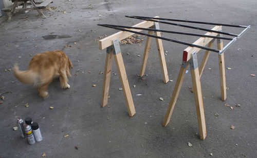 Si usted está preocupado acerca de la apariencia del producto final (que debe ser) debe pintar ahora las cerchas. Esto es para que no tenga que preocuparse de pintura una vez que han sido asegurados los tableros de clavijas. No pinte dentro de un pie de la parte inferior aunque ya tenemos algunos más de la soldadura para hacer.