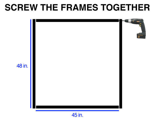 2. atornillar los bastidores con tornillos de 2 1/2 a 3 pulgadas. Consulte el diagrama
