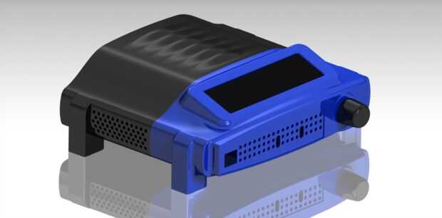 Al final terminé levantando la superficie superior 0,750" y fluye hasta los bordes originales de parte superior de la caja de fábrica. Esto me permitió mantener una forma de fábrica algo al caso. Entonces fluyó la superficie hasta el borde frontal original dándole una bonita forma orgánica. Extendió un cojín frente a la pantalla LCD y persianas la superficie superior para permitir el escape de calor. La parte trasera de la caja seguía siendo casi común con excepción de la parte superior donde se montan los conectores DB9. Podrás ver en la imagen de nuestro router anidado encima un direccionador Linksys de fábrica.