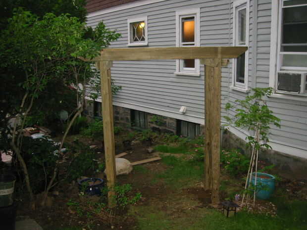 Luego fije los travesaños derecho e izquierdos (1x4s). Hay cuatro de ellos (cada "horquillado" los postes verticales). Coloque debajo de la parte delantera y atrás Cruz piezas tornillos en cada unión.