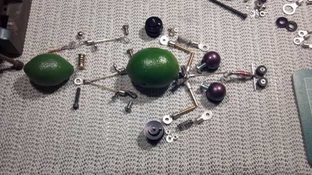 Empezar por mirar las piezas de cuerpo y encontrar un eje de simetría y marque el centro de la parte superior e inferior con un marcador. El tren de aterrizaje y ala Asamblea pueden montarse de forma independiente o junto con un perno"de corazón" recorrer todo el camino. Todo lo que necesita para conectar el cuerpo utiliza la misma técnica: un taladro, inserte algunos epoxy, montar la pieza. Eyes(knobs) de madera tienen un lado plano y un agujero en ellas. Una vez pintado y seco, yo utilice un tornillo 6-32, cerca de 3/4 pulgadas de largo, epoxy en el ojo, fije el anillo de goma, deje que se seque. Una vez seco, poner el epoxi en el orificio del ojo en el cuerpo y la varilla de 6-32. 5/8" ojos de cojinete de bolas de latón - la soldadura de 3/16" diámetro x 1/2" largo del tubo de cobre de montaje. Rodamiento de bolitas ojos - acero/cromo... sugeriría no tomar soldadura. Yo descubrí que tenía en bruto hasta un lugar con una herramienta dremel (y rueda de corte) y el tubo de epoxy en.