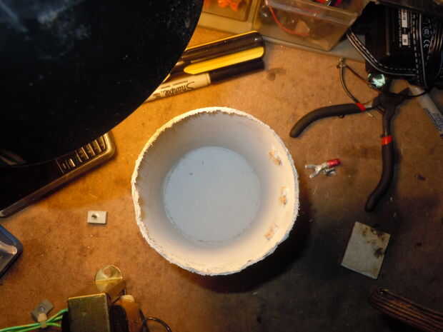 Luego corte la parte superior y haga tres agujeros para los cables de salida, un poco más pequeños que los tornillos de su uso por lo que permanecen firmemente (espacio les según el tamaño de la lavadora se utiliza), luego haga dos orificios en la parte superior para sus cables de entrada Asegúrese de que no son más grandes que el aislador su uso. Luego pintar la tapa y la caja blanca o gris claro.