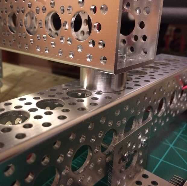 Perno el 2 nueve pulgadas canales junto con el. 5" espaciador de aluminio. El canal superior con que el lado abierto hacia arriba en la parte superior del espaciador en el if medio el canal inferior. y la inferior del canal es parte en el otro lado del espaciador. Los dos canales forman una letra ' t '. Utilice tornillos de 4 cuatro a cada lado del canal/separador, con el primer tornillo en el orificio central del borde del canal.