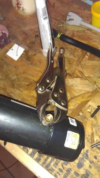 Una vez que el agujero es perforado, gire lentamente el accesorio en el agujero. Usé un par de vice grips aferrarse firmemente a la guarnición. Para utilizar el hilo aprovechando la técnica de convertir en 3/4 de vuelta, girar a media de respaldo. Es lento que va, pero el agujero será aprovechado con hilos y no tira de él hacia fuera. ¡Ten cuidado! No quiero estropear este agujero y tiene que volver a empezar!