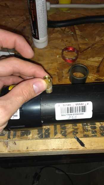 Perfore un agujero cerca de la tapa de inspección final. Hacer el diámetro ligeramente más pequeño que el accesorio. Enroscará la guarnición en suavemente, golpeando el agujero a medida que vamos. Siempre puede volver atrás y hacer el agujero más grande, pero es mucho más difícil de hacer un agujero más pequeño.