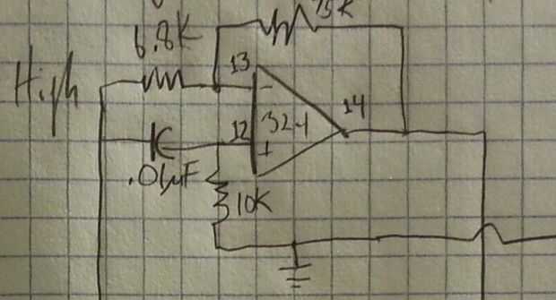 Llevar la salida del pin 1 hasta un área diferente en el tablero. Conectar el condensador de .01uf a la salida del pin 1 a continuación, conecte el comparador a la resistencia de un 10 k y el pin 12. Luego conecte la resistencia de 10 k a tierra. Ahora también conectar la resistencia de 6,8 k a la salida del pin 1. A continuación, conecte la resistencia a la resistencia del pin 13 y 75k. Ahora conecte la resistencia k 75 al pin 14.