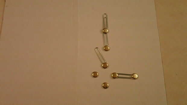 • Ahora extienda el "cable" de continuar este proceso de alineación de clips, empujando los agujeros con el clavo, agregar otro clip y brad.  (ver foto)