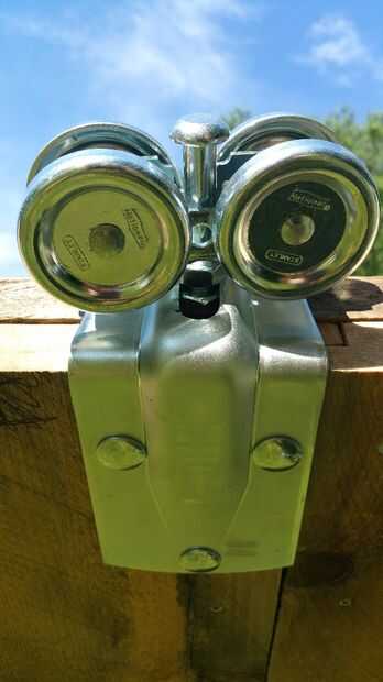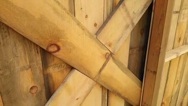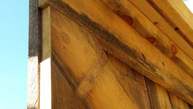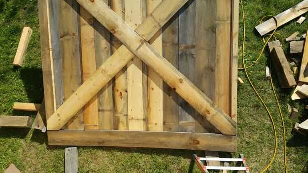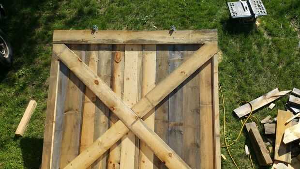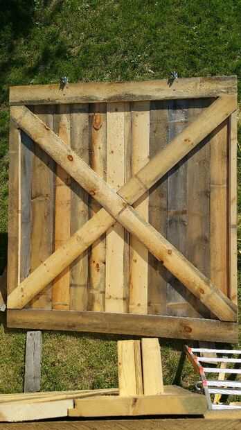 La puerta es a construir porque es sencillo, hermoso y rápido de armar. Y se trata de las partes móviles! (los carros) El primer paso para la construcción de la puerta es encontrar un suelo perfectamente nivelado. Será donde se construir la puerta para que no introduzca cualquier deformación extraña. Por suerte, puertas correderas son algunas de las configuraciones más estables de la puerta, por lo que la física está de su lado. Construimos nuestra puerta de los tableros mismo como nuestro revestimiento, y nos aseguramos de la nave de vuelta las tablas verticales. La Cruz es bastante simple, que implica una pieza transversal contigua y uno que se corta por la mitad. Las dimensiones de la puerta eran tales que había superpuesto al lado por cerca de seis pulgadas y la parte superior e inferior 2-4". Por favor siga las fotos para detalles de construcción y post preguntas más abajo.