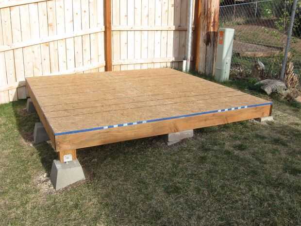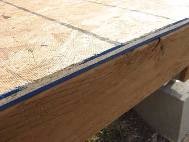 Dos hojas de 4' por 8' lengüeta y ranura de 23/32" OSB fueron utilizadas para los tableros de piso. Éstos fueron sujetados a la estructura del suelo y las vigas con tornillos de 1 1/2" exterior colocan cada 8 pulgadas o menos.