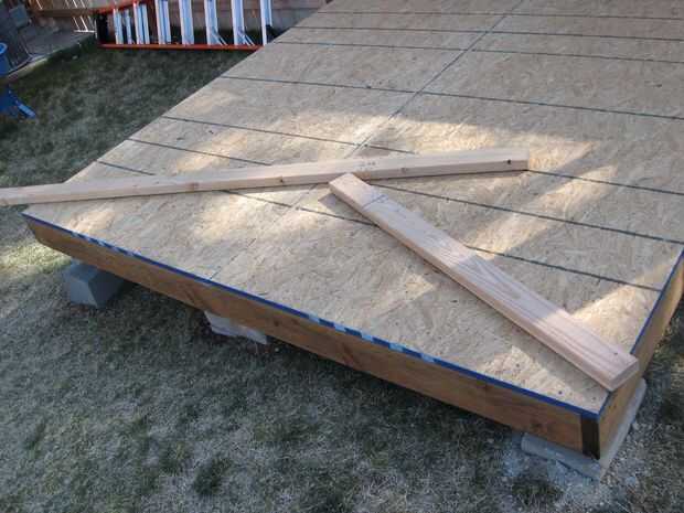 La construcción de las cerchas del techo como las paredes se realiza en la plataforma de piso. Se trata básicamente de una mesa de trabajo grande, tamaño perfecto que actúa como una guía de tamaño como usted ensamble los componentes que en última instancia ser sujetados a él.