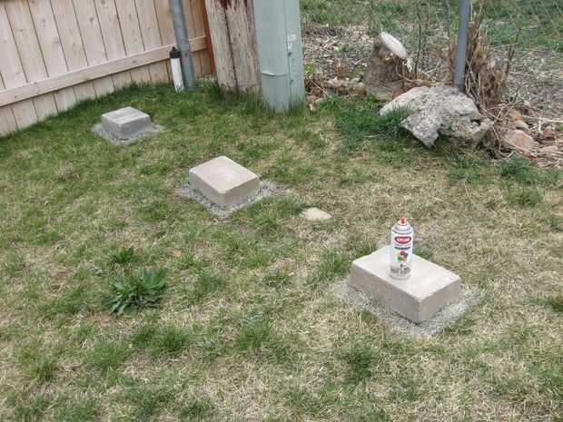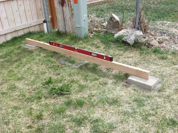 Tengo una pendiente de 12 pulgadas donde quería que mi nave, así que pongo la mitad superior directamente sobre bloques enterrados sólo ligeramente en el suelo, y la otra mitad para arriba en las canalizaciones verticales elevadas atornillada a cuadras del muelle de hormigón, similares a cómo se construiría una terraza baja. (Hay regulaciones específicas para la región en estas cosas, así que sus necesidades / requisitos pueden variar.)