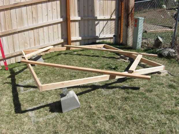 Hacer un marco temporal similar puede ser útil si usted está construyendo un galpón sobre terreno relativamente plano, sin embargo, cuidadosamente midiendo de esquina a esquina para verificar perpendicularidad respecto del trazado de sus calles de tierra que debería ser suficiente.