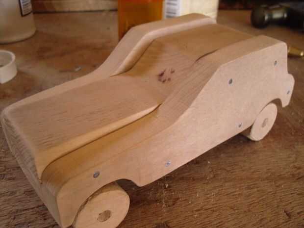 Después de tocar su coche con un papel de lija fino, ¡ listo! Si desea, puede manchar el coche, pero si quiere hacerlo, lo haría antes de pegar las ruedas en así que una aplicación uniforme y fácil de la mancha. Incluso puede aplicar una o dos capas de poliuretano para darle una sensación brillante!
