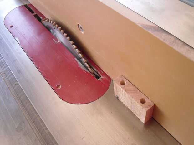 Titulares de eje grueso de media pulgadas es demasiado que deje espacio para las ruedas al girar, por lo que el siguiente paso es afeitarse aproximadamente 1/8" fuera del tablero. Para hacer esto, arrancó la Junta como ves en la imagen segunda de una manera que exponer la longitud del agujero perforado en la cuarta foto de arriba. Tener cuidado porque la Sierra de mesa debe ser la hoja salía una justa distancia de la tabla.