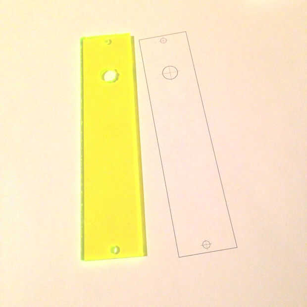 Decidí hacer el cuerpo usable del plexiglás fluorescente verde (uno de mis materiales favoritos). Podría hacer lo mismo, o hacer el tuyo fuera de madera, cartón,. Es más fácil hacer algo no favorable, pero se puede utilizar metal si Cuidaras para aislar pads de Gemma del cuerpo usable.