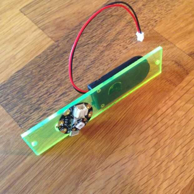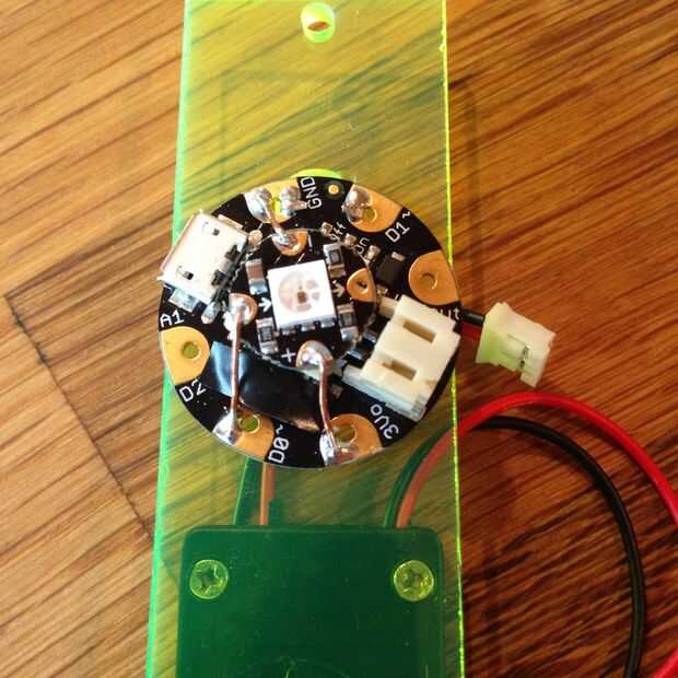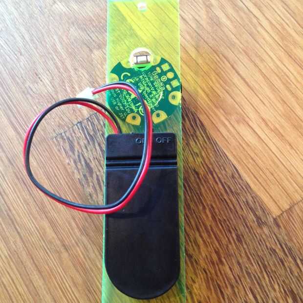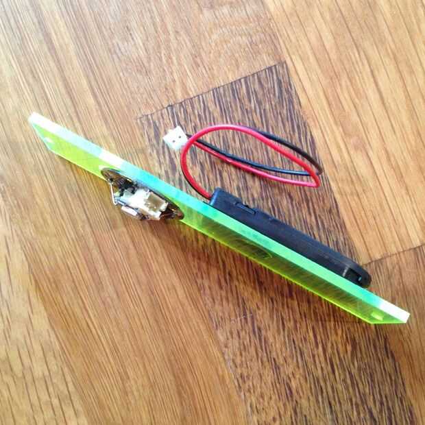 A continuación, utilice un punto adhesivo, al igual que con Gemma para fijar el soporte de la batería al cuerpo usable. Puede anexar el soporte de la batería donde quieras, pero el diseño básico coloca el soporte de la batería en el lado opuesto de la Gemma (ver fotos).