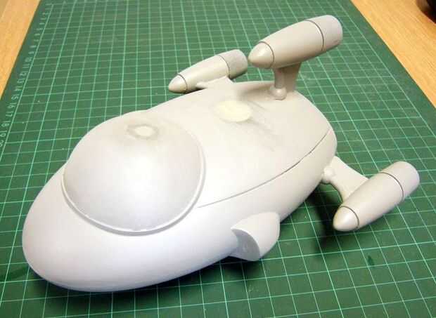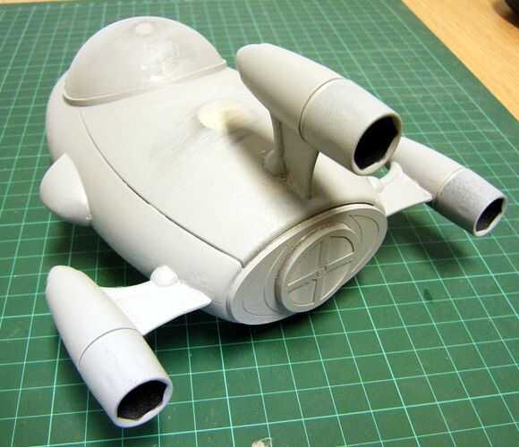 Una vez que el motor estaba en su lugar sentí que el modelo estaba listo para recibir una mano de imprimación. La pintura unifica el aspecto del modelo, revelando defectos y mostrando lo que hay que lijar.
