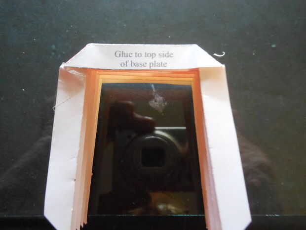 a continuación pegué donde dice "pegar este lado a la parte superior de la placa base" a las olas de la base, usando el pincel para extender una buena cantidad de pegamento en el área ligeramente sombreada y pegadas a las piezas.