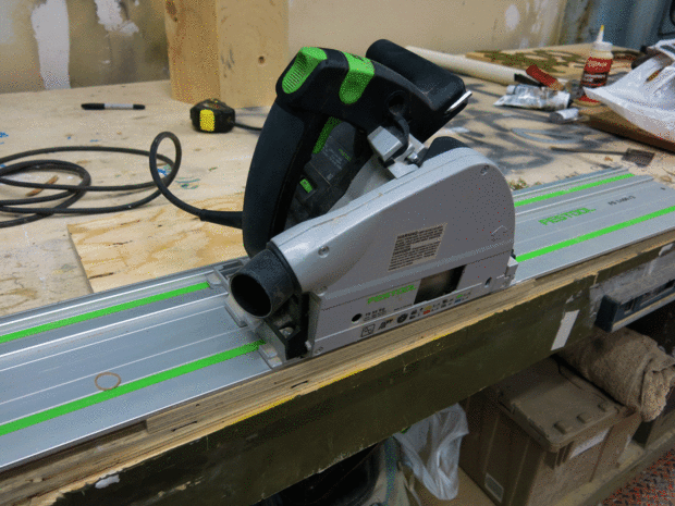 Estaba tratando de averiguar cómo hacer la estancia de metal de registro sobre las tiras de madera contrachapada y pasó a un viejo rollo de cinta de la alfombra - perfecto!