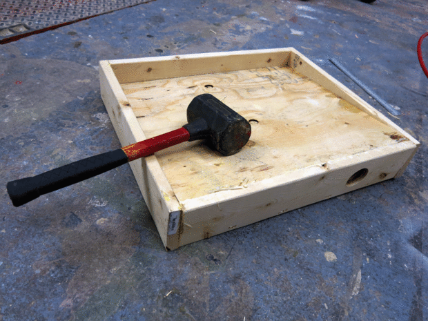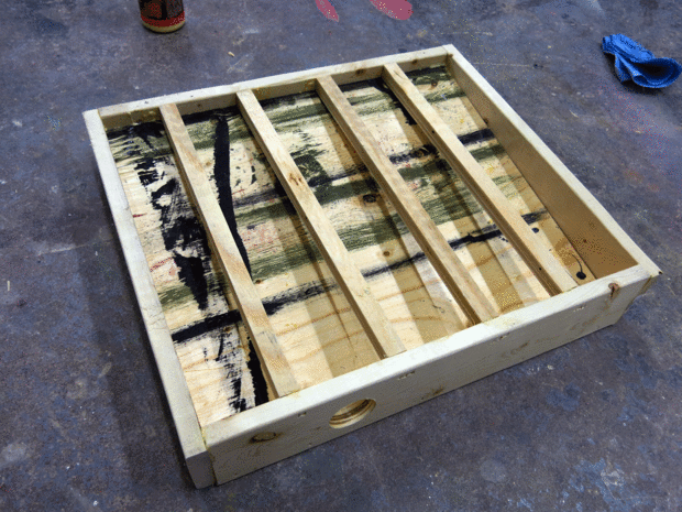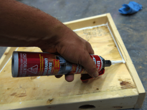 Con la ayuda de un mazo de convencí a la madera para encajar en el marco de 1 x 4; He añadido algún sellador para asegurarse de que la succión del vacío sólo llegará a través de la rejilla en la parte superior.