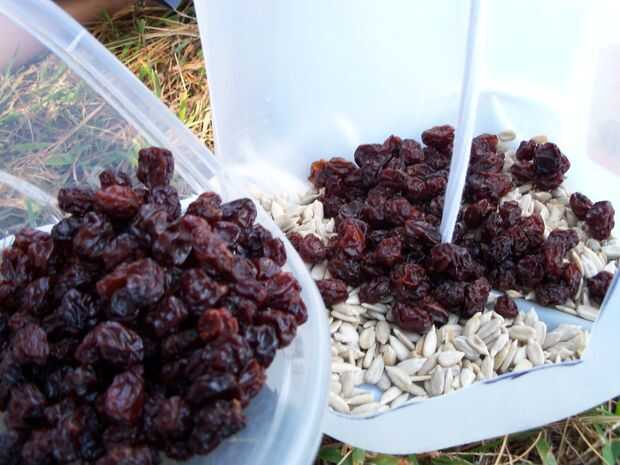 Ahora que ya tenemos la forma del alimentador establecido ahora es el momento de llenarlo. He decidido llenar con semillas de girasol y pasas de uva pero este paso es totalmente hasta usted, experimentar con diferentes alimentos crees aves quisiera más. Esto también podría depender del tipo de pájaro que desea atraer.