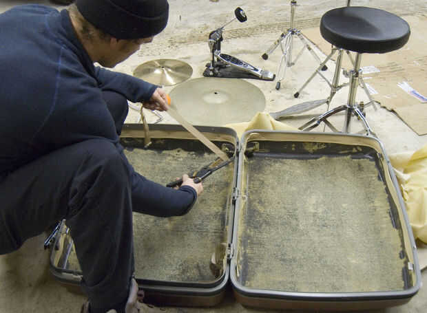 Dejar intacta la frontera material más gruesa. Si usted rasgar hacia fuera, los remaches sosteniéndolo en permanecer y causar un sonajero que suena horrible (sin embargo, usted puede humedecer esto con el adhesivo caliente si usted arrancar demasiado cosas). Corte los tirantes supletorias y aletas.