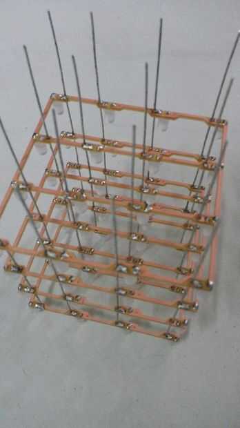 1. en primer lugar, soldar todos los LEDs de 16 a 1 cubo plano PCB. Tenga en cuenta todos los pines conectados son pasadores de cátodo (Compruebe por favor cuidadosamente en la parte inferior de la PCB) y el espacio no es muy amplio; por lo tanto, la soldadura con cuidado y evitar tender un puente sobre.