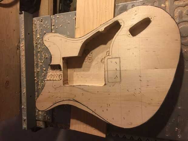 La ruta se puede hacer mucho más fácil por perforación hacia fuera la mayor parte de la madera con un taladro y broca forstner. Encamina hacia fuera más madera que es estrictamente necesario para reducir el peso del producto final. (Arce es extremadamente pesado, probablemente una de las maderas más pesadas normalmente utilizados para las guitarras).