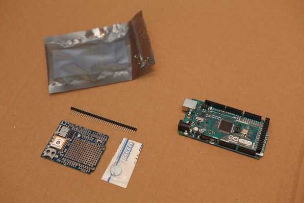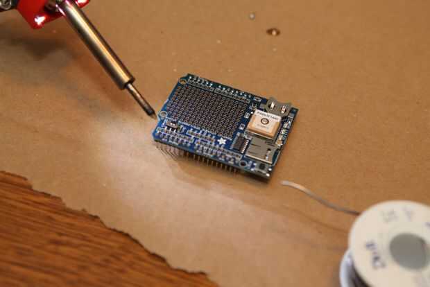 Solde todas las clavijas de encabezado en el GPS logger shield.