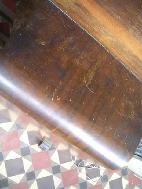 Que estaba buscando para una superficie de acabado curvo art decó que yo podría hacer la pieza central o 'motivo' de la Somaphone... este aparador de sala era perfecta y sabía de experiencia que con un poco de Francés Polaco esto se acercaba como sabía ya que no había ningún daño de agua a la chapa.