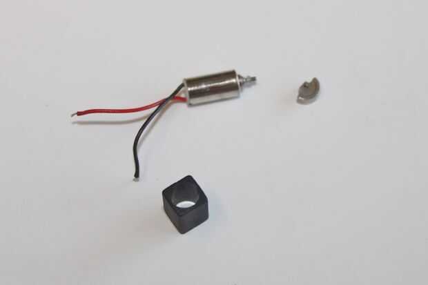 Si el motor viene con un peso de vibración en su eje, usted necesitará remover, teniendo cuidado de no dañar el árbol. He utilizado este truco: tomar el eje entre un par de tijeras o pinzas de corte fino (no hacer esto con sus tijeras mejor) y descansar esto libremente en algún soporte (yo usé un tornillo de banco). Con un alfiler golpee el eje fuera el peso.