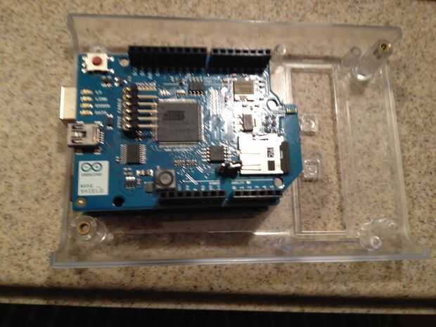 El WiFi protector resbala muy bien sobre la Arduino Uno sí mismo. Si usted no está construyendo este proyecto exacto por favor asegúrese de leer la siguiente página como esboza qué pines son necesarias para la protección de WiFi y SD tarjeta