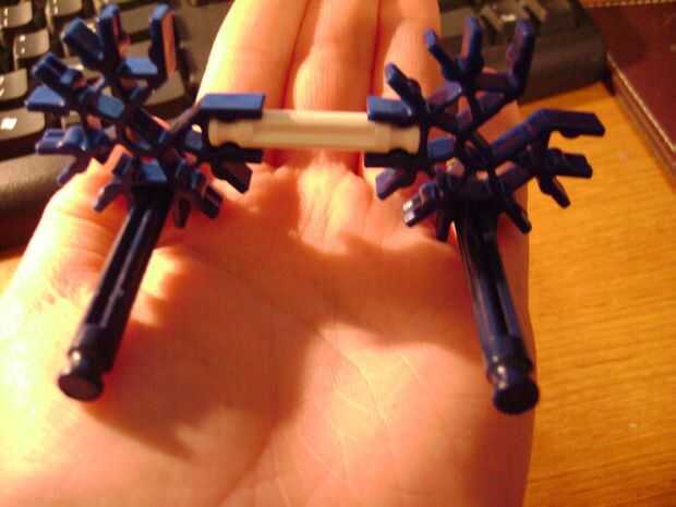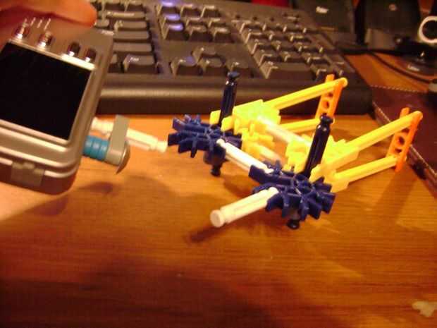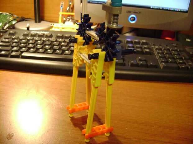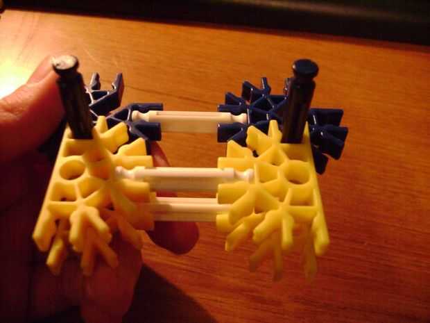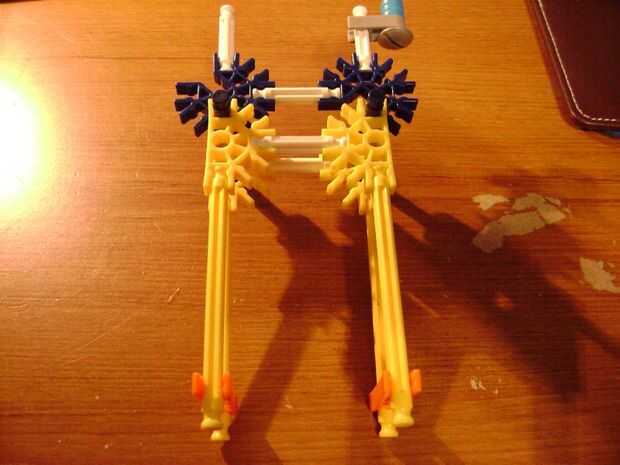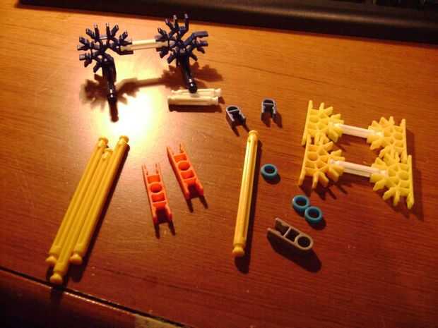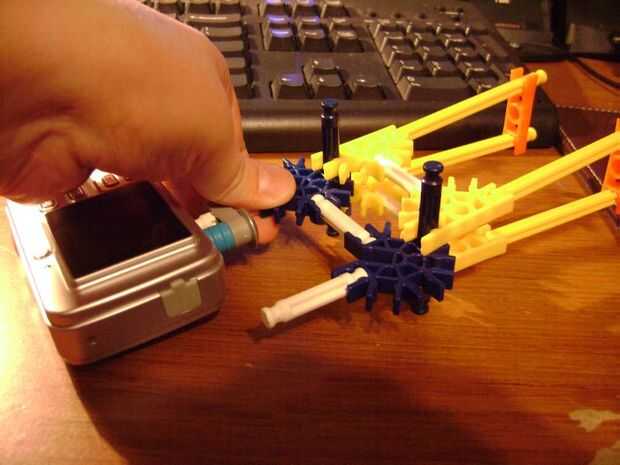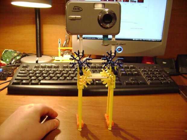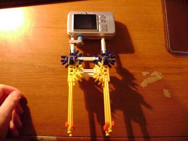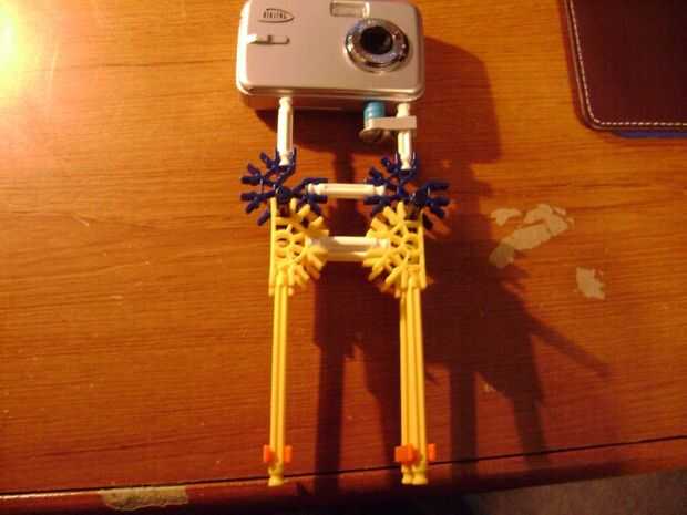 utiliza k'nex todos excepto el perno usado para conectar la cámara a la k'nex. Vean mi video de youtube sobre cómo hacerlo y usarlo.