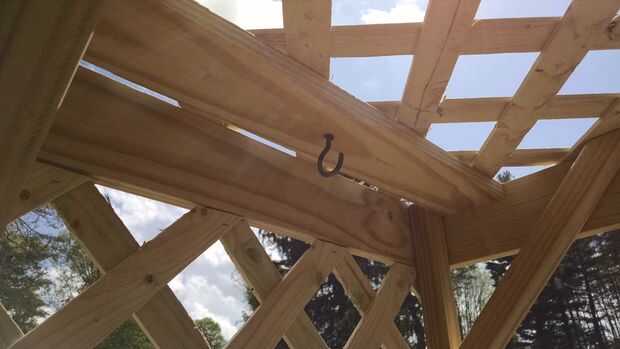 Mi esposa ya tenía vides creciendo donde quería poner este árbol. Cepas son una opción pero no es necesario. Hemos sido capaces de colocar el eje donde quería entonces martillo la parte superior del eje para obtener la varilla sólida en el suelo. Luego usé un nivel para asegurar que el eje fue plomo y nivel.