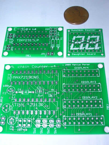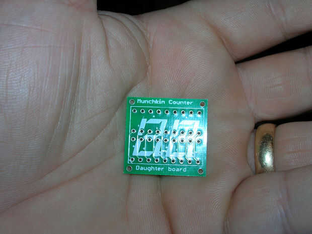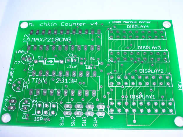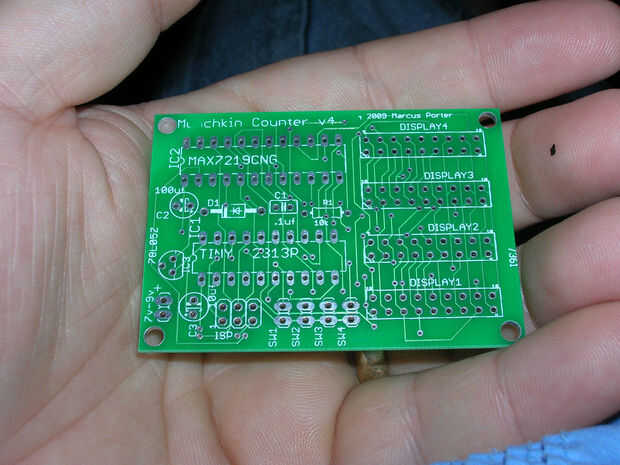 Si desea imprimir las tarjetas usted mismo hay un montón de guías disponibles en instructables y otros lugares. Las tablas son bastante apretadas ya que quería hacerlos tan pequeños como sea posible sin usar componentes de montaje superficial. Por lo tanto, si imprime su propio probablemente querrías hacer tus propios diseños desde el esquema, cosas del espacio fuera un poco. Dado que ya no están pagando por la pulgada, puede hacer que las tablas un poco más grande. También haría algunas de las huellas más grandes. El archivo adjunto "munchkin-contador-eagle.zip" tiene el esquema (y diseños de tablero) en formato de cad eagle. Una vez más, hay una gran cantidad de información acerca de cómo utilizar a cad eagle para ver y modificar esquemas y tablas. Este artículo tiene excelentes consejos sobre hacer amigable su tablero DIY.