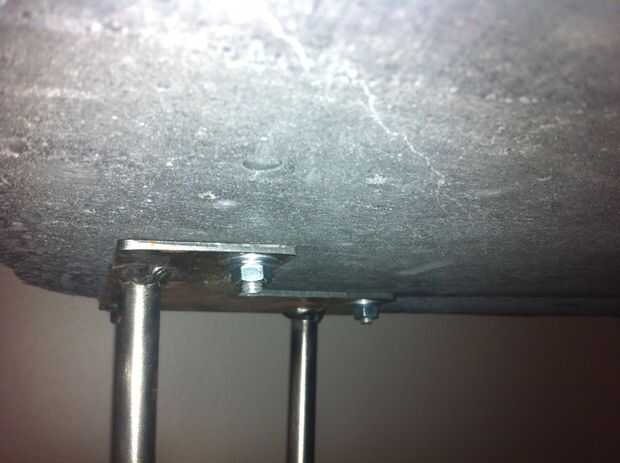 Este paso es bastante sencillo.  Perno en las piernas.  Usé la 1/2 "x 27" que, sobre todo porque estaban en especial, pero son la longitud correcta.  Una vez que estén apretados, tiene un amigo o dos ayuda lo levanta en su lugar.  NO INTENTE DESLIZAR.  Eso no funciona.  Una vez que esté en su lugar, debe probablemente va a dejar en su lugar.