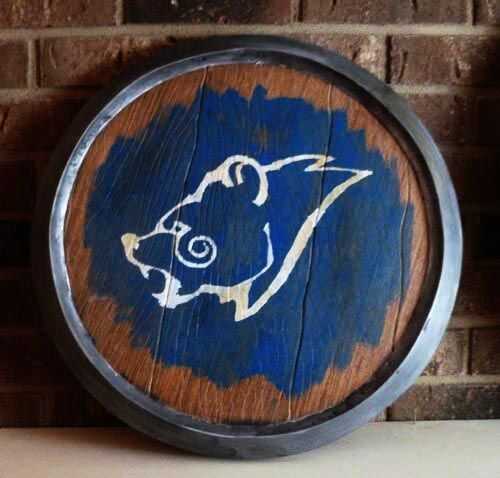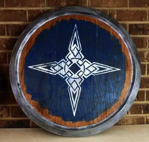 Este escudo es del videojuego Skyrim. Cada uno de los nueve bodegas, ciudades, tiene este escudo con un símbolo único. Te llevo a través de mi proceso de creación de dos escudos. Uno aproximado como juego tamaño exacto en 24" con el símbolo de Dawnstar y otro en el 18", con el símbolo de casco.
